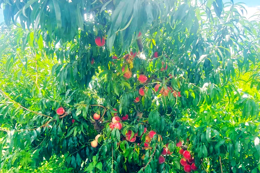 基地种有黄桃、红宝石等品种的桃子,成熟的果品深受广大消费者喜爱,通过本地零售,销往各乡镇集镇就能全部售卖完。目前基地的桃子已经进入了丰产期,采摘期从8月中旬到9月底结束,其中黄桃的价格在10元左右每公斤。