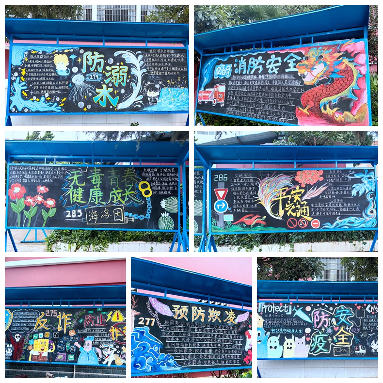 宣传活动围绕“交通安全”“消防安全”“防溺水安全”“校园欺凌防治”“食品安全”五方面展开。创作过程中,同学们热情高涨、分工协作:有的主动查阅安全资料,筛选实用的避险技巧与应急方法;有的发挥绘画特长,用鲜活的卡通漫画还原安全场景、警示危险行为;有的认真书写安全标语与知识要点,确保内容清晰易懂。各班板报虽风格不同,但均紧扣安全主题,成为校园里传递安全知识的“活教材”。