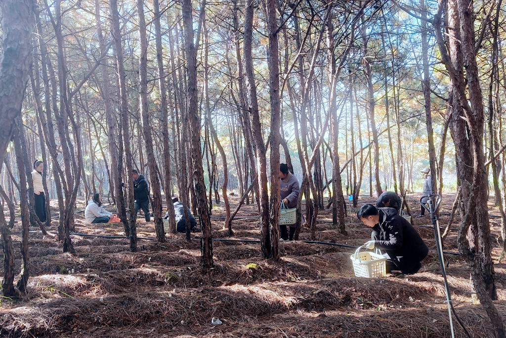 宣威花瓣雨农旅发展有限公司董事长周建华:在宣威2000米的海拔上面,今年冬季赤松茸我们在10月份下种,12月份开始采摘,可以采摘到春节前,明年2月份前采摘结束。