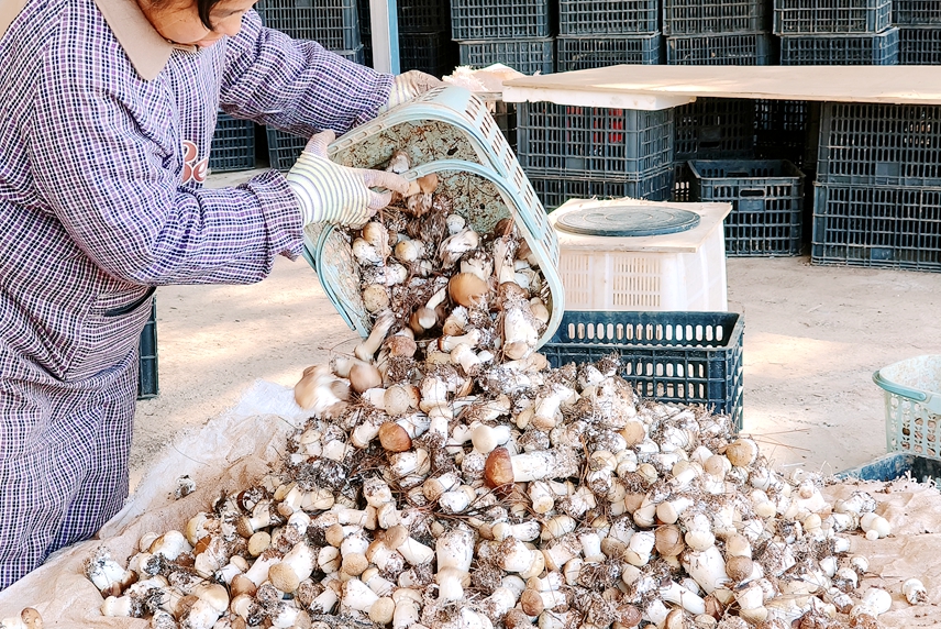 赤松茸种植周期短、见效快、风险小,每年种植两季,其中冬季赤松茸秋种冬收,12月份刚好“错峰”上市,不仅实现了口感更佳,价格也有更大的优势。