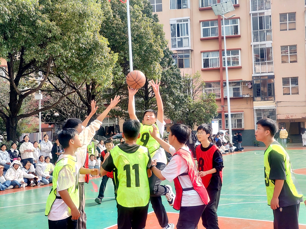 运动会赛程紧凑、项目丰富,尤其注重以集体项目凝聚班级力量、培育协作精神。男子篮球赛中,队员们默契配合、激烈角逐,每一次得分都伴随着场边师生的热烈欢呼。女子拔河现场,队员们紧握长绳、齐声发力,生动诠释了团结拼搏的精神。接力赛道上,运动员们疾驰如风,接力棒的传递承载着信任与期盼。教职工篮球友谊赛中,老师们在赛场上挥洒汗水、展现活力,赢得了学生的阵阵喝彩,融洽了师生情谊。