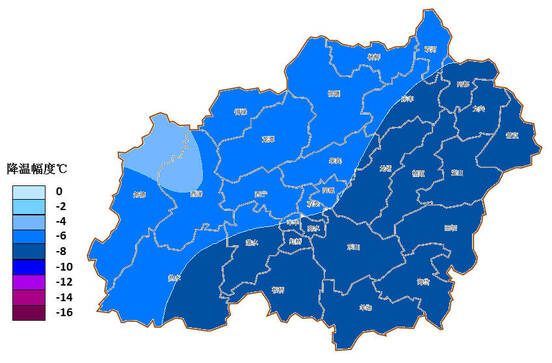 图1 宣威市2025年12月31日20时-2026年1月4日20时最高气温降温幅度预报