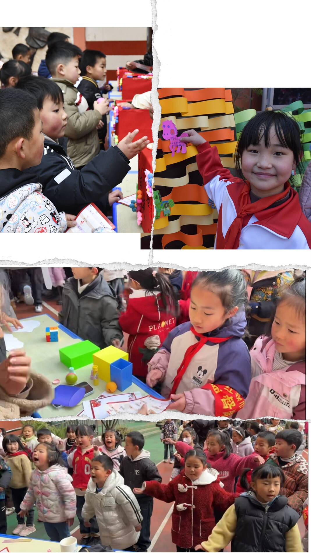 活动中,孩子们手持测评卡穿梭于各个关卡,或大声认读拼音词语,或专注辨认图形,或动手整理红领巾,在轻松的氛围中展现学习成果,校园里满是欢声笑语。