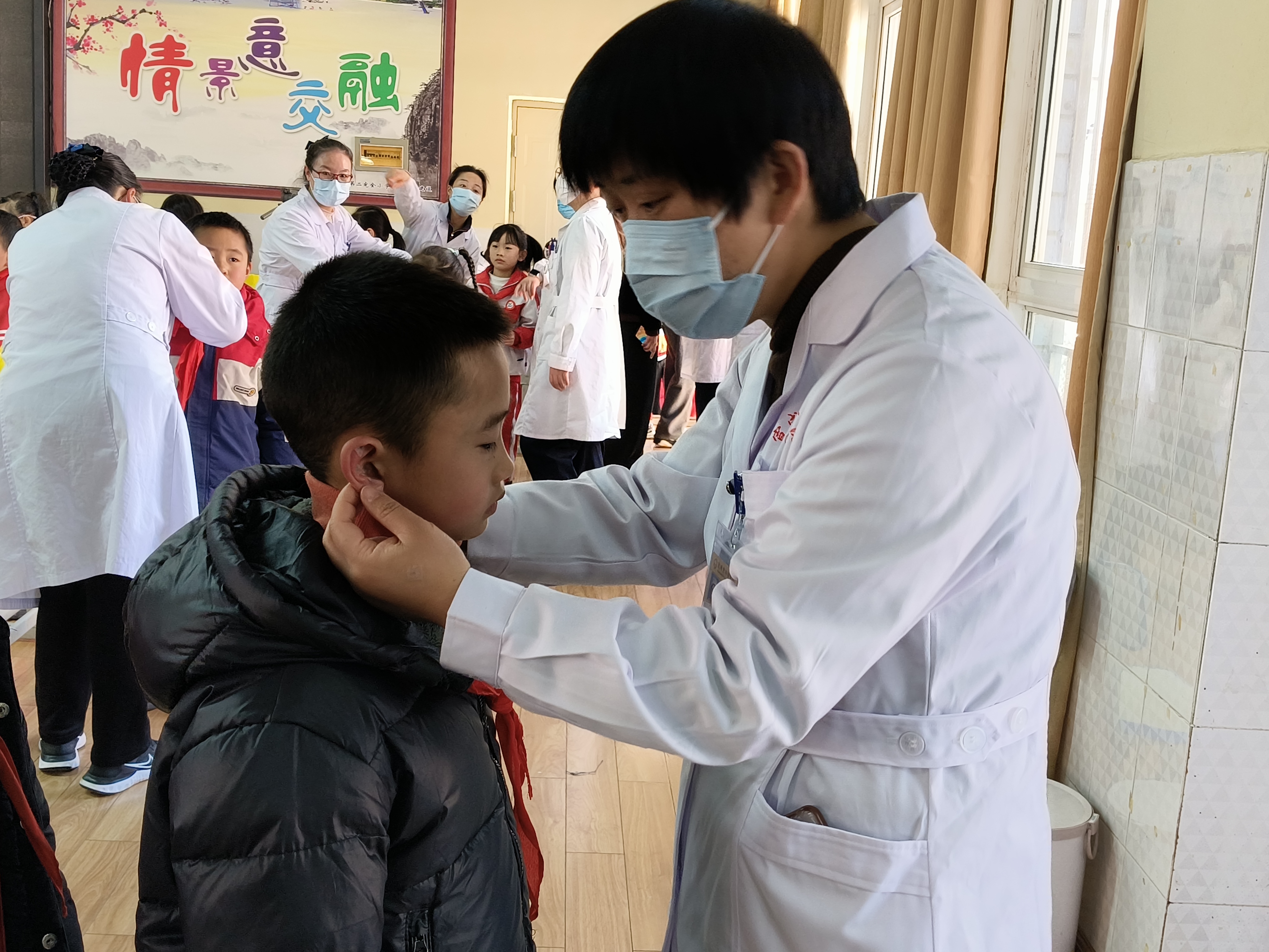 在宣威市宛水二小,宣威市中医医院的医生和护士们分工合作,给1-5年级的学生进行“人工找穴位”和“耳穴压丸”,并耐心为同学们讲解自行按压手法和后续相关注意事项。