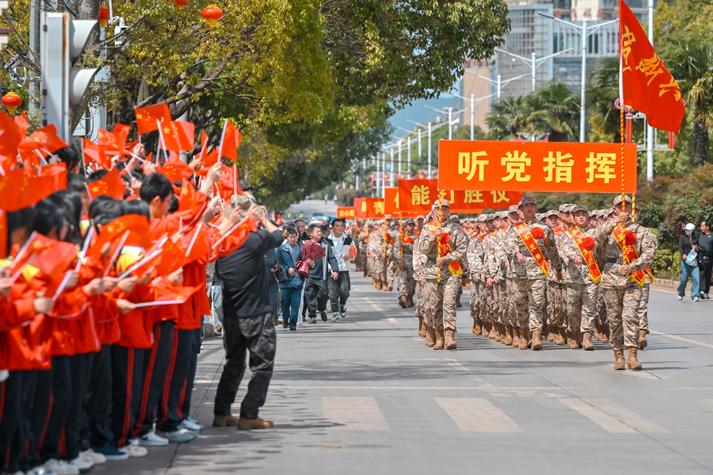 叶旭军勉励入伍新兵,要铸忠魂、守初心,做听党指挥的忠诚卫士;要砺本领、淬血性,做能打胜仗的强军尖兵;要担使命、建新功,做不负韶华的时代青年。他表示,市委、市政府将始终把国防和军队建设摆在重要位置,全面落实拥军优属各项政策,用心用情解决军属在就业、入学、生活等方面的实际困难,全力做好后勤保障,让新兵们在军营安心服役、放心建功。也希望全社会共同传承拥军传统、凝聚强军合力,让宣威成为全体官兵最坚实的后方、最温暖的港湾。