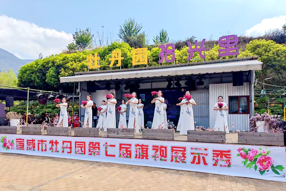 3月28日,伴随着春日暖阳,在宣威易冠牡丹园300多名旗袍爱好者身穿各种款式的旗袍,在牡丹园内上演走秀和广场表演,鲜艳绽放的牡丹与国粹旗袍交相辉映,形成了一道亮丽的风景。
