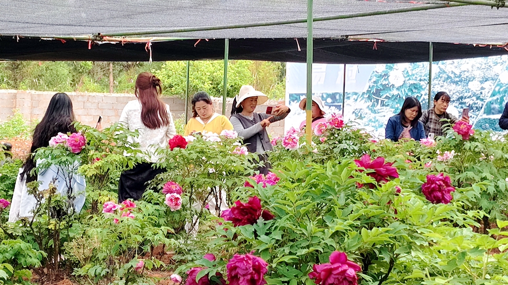 宣威易冠牡丹园负责人刘彦宏: 每年3月初1000多种牡丹花在我们易冠牡丹园逐渐盛开 ,在我们这里市民可以观赏牡丹花,品尝牡丹花粑粑特色小吃,每月举办不同的文化活动,为游客提供一个亲近自然放松的好去处。
