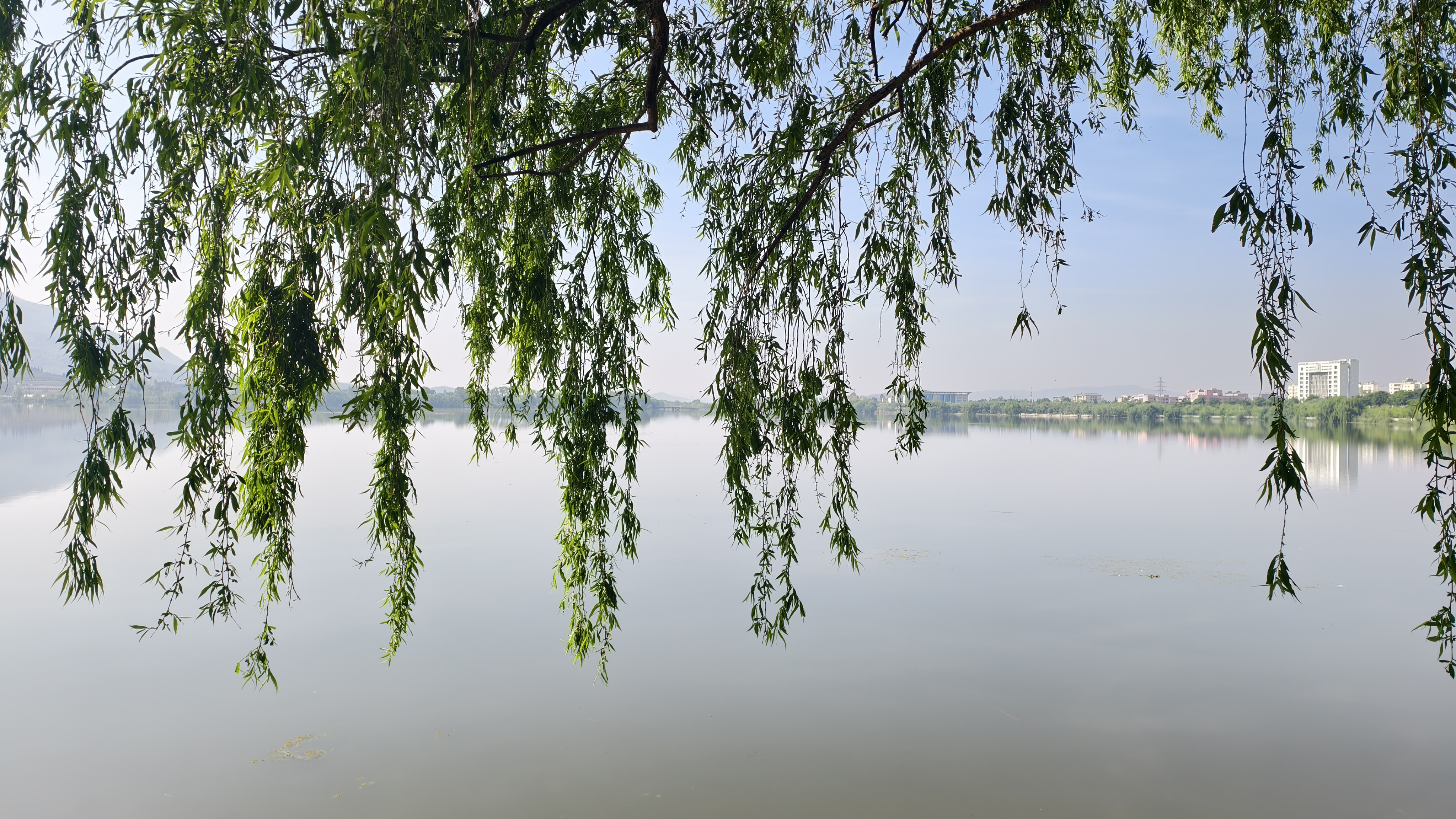 风过处,柳浪翻涌如诗行,水光潋滟似未写完的留白;而金月湖的呼吸,正随山色明灭、云影聚散……